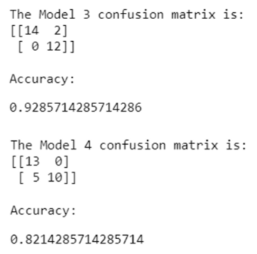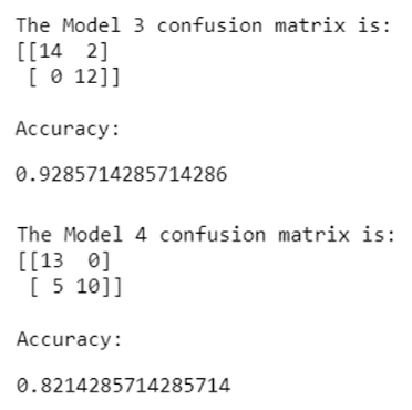 Below are the documented results of the models after training and evaluation. The results include a confusion matrix showing the predicted results vs. the actual labels, along with an overall accuracy metric for each model. Note the discrepancy in accuracy between the Lie Detection models (models 1 and 2) vs. the Sentiment classification models (models 3 and 4). In the world of text mining, determining a fake review from a real review tends to be much more difficult than classifying a review as positive or negative. This is because the linguistic cues for spotting fake reviews are more subtle and nuanced and require a deeper understanding of context compared to categorizing reviews as either positive or negative. Positive and negative reviews are often characterized by the specific vocabulary that falls into either positive words such as ‘good’, ‘great’, ‘tasty’, ‘satisfying’, etc., and negative words such as ‘bad’, ‘awful’, ‘gross’, ‘dirty’, etc. In the feature importance section of this paper, we will examine the most important words that the model used to make determinations of either fake/real or negative/positive.
