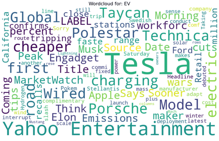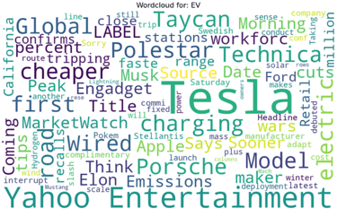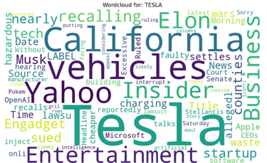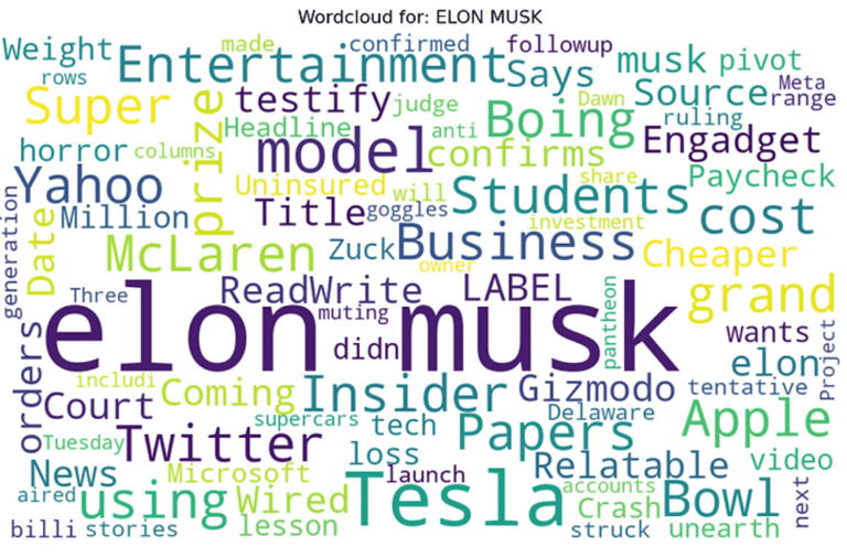 Below are the finalized wordclouds for each of the topics, starting with Tesla and ending with Elon Musk.