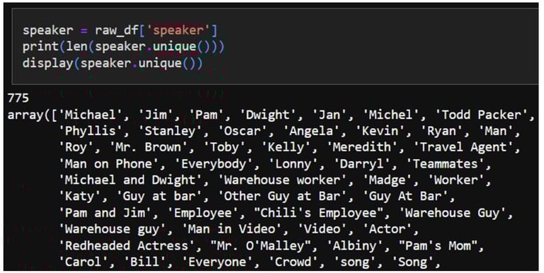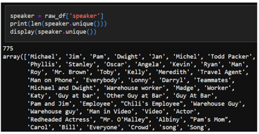 This project will utilize The Office dataset from Kaggle, consisting of every line of dialogue from every character in the TV show The Office. The goal will be to text-mine this dataset, focusing on the speaker and the line of dialogue columns to train models that can read a line of dialogue and predict who the speaker is.