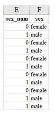 In order to run Logistic Regression on our Titanic dataset, the data must all be in a numeric format. Since the values in the sex column are text, we will need to convert these to numbers. I added a column and used the Excel formula =IF(F2="female",0,1) to fill the row with a 0 if female, 1 if male.